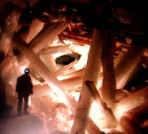 Entre las decenas de correos recibidos cada día, uno captó mi interés. Contenía fotos de unos cristales de yeso de tamaño descomunal, las personas fotografiadas a su lado parecían gnomos. Eran de una transparencia increíble, limpia, impoluta, incluso teniendo el grosor de una persona.